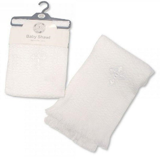BABY CHRISTENING SHAWL - WHITE CROSS