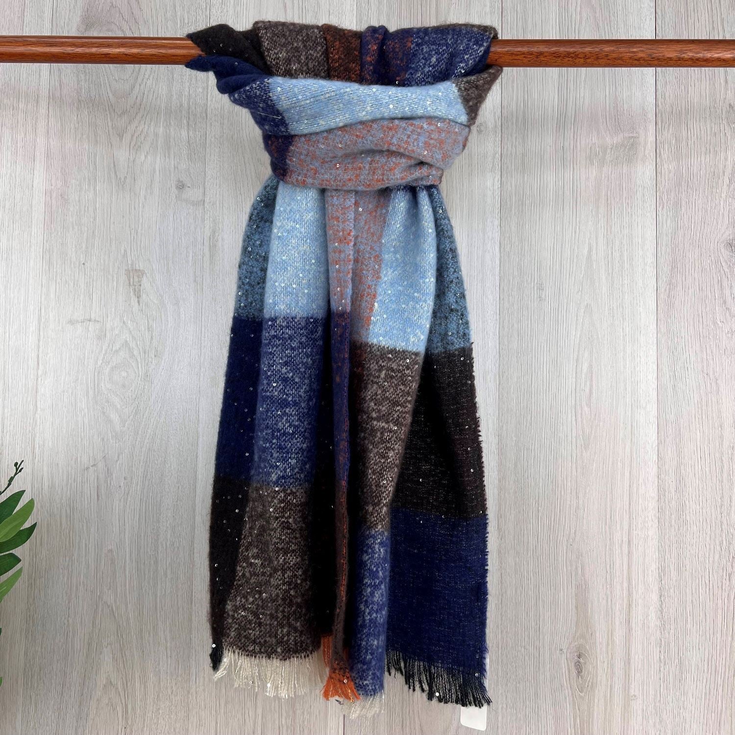 Navy Chunky Winter Checked Scarf With Sequenced Fleck